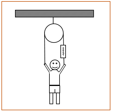 බර W වූ ළමයෙක් රූපයේ පෙන්වා ඇති අයුරින් සැහැල්ලු අවිතන්ය කඹයක දෙකෙළවරින් එල්ලී නිශ්චලතාවයේ සිටි. දුනු තරාදියේ බර නොසලකා හරිය හැකි තරම් කුඩා වේ නම් එහි පරිමාණයේ පාඨාංකය වන්නේ,